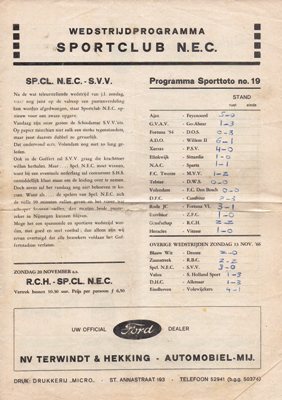Sportclub NEC - SVV / 13-11-1966 / 3-0 Sportclub NEC - Vitesse / 27-11-1966 / 2-2