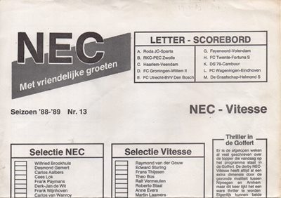 Programmaboekjes thuiswedstrijden NEC / seizoen 1988 - 1989 / 1e divisie.
