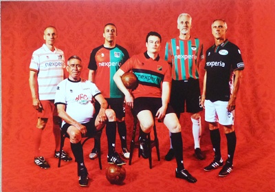 Foto van de 6 nieuwe shirts voor het seizoen 2025 - 2026 i.v.m. het 125 jarig bestaan van NEC.