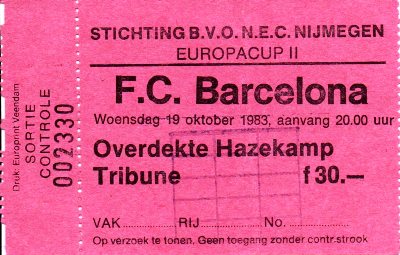 FC Barcelona - NEC / 02-11-1983 / uitslag 2-0. ( met dank aan Andre van Koolwijk / 05-2020 )