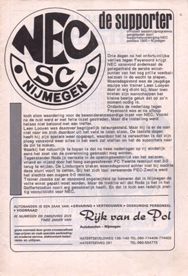 Sportclub NEC - Roda JC / 25-08-1979 / 2-0 Sportclub NEC -PEC Zwolle / 08-09-1979 / 4-1