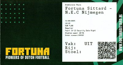 tickets van: 27-03-1967 / 09-04-1977 / 03-10-1981 / 01-04-1989 / 25-09-1993 / 27-10-1996 / 08-05-1999 / 09-12-2000 / 28-04-2002 / 01-02-2003 / 04-10-2003 / 21-01-2005 / 02-10-2005 / 24-12-2006 / 03-11-2007 /28-12-2008 / 19-09-2009 / 19-01-2011 ( verzet van 19-12-2010 ) /21-08-2011 / 20-10-2012 / 13-04-2014 / 01-11-2015 / 28-08-2016 / 01-09-2022 / 29-10-2023 / 06-12-2023 ( extra ticket voor restant wedstrijd 29-10-2023 en het busticket voor 5 minuten voetbal ) / 17-08-2024 /